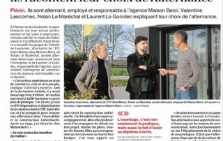 Article Ouest-france : L’alternance chez Maisons Berci : former et accompagner les talents de demain